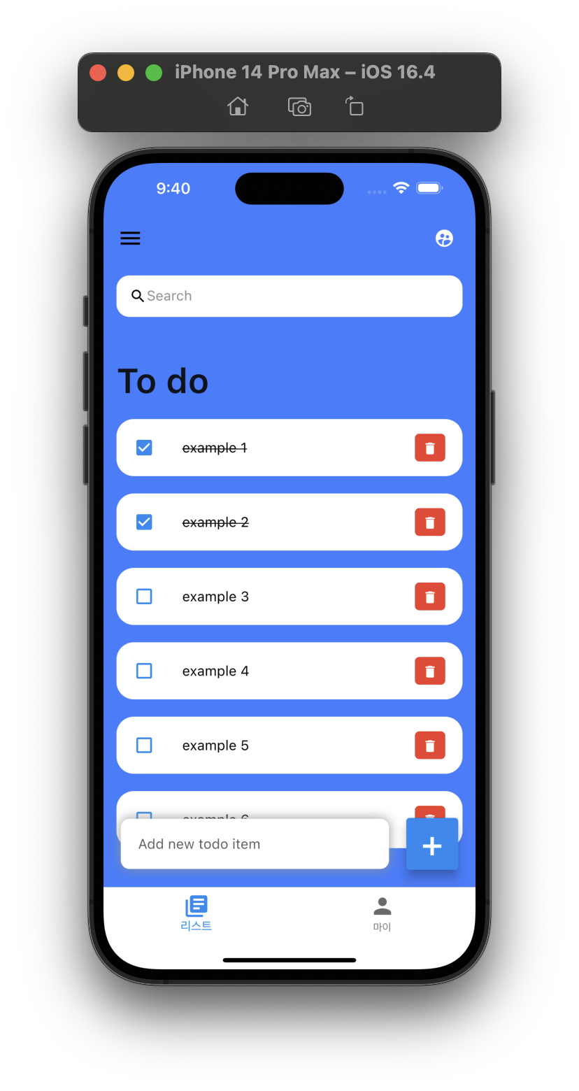 이 프로젝트는 macOS 에서 VScode를 사용했스며, iPhone 14 Pro Max 시뮬레이터를 사용했습니다.