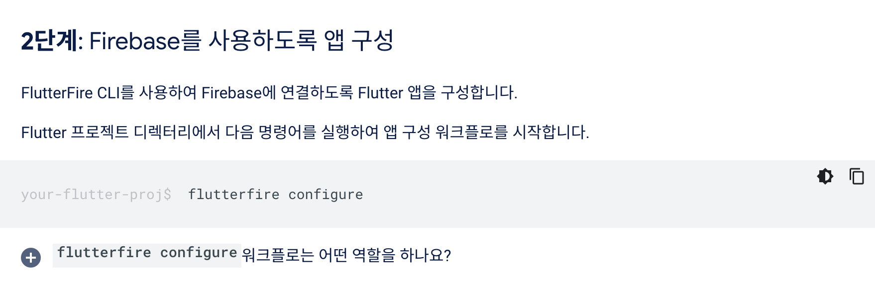 플러그인 설치 후에는 flutterfire configure를 통해 최신상태인지 확인합니다.