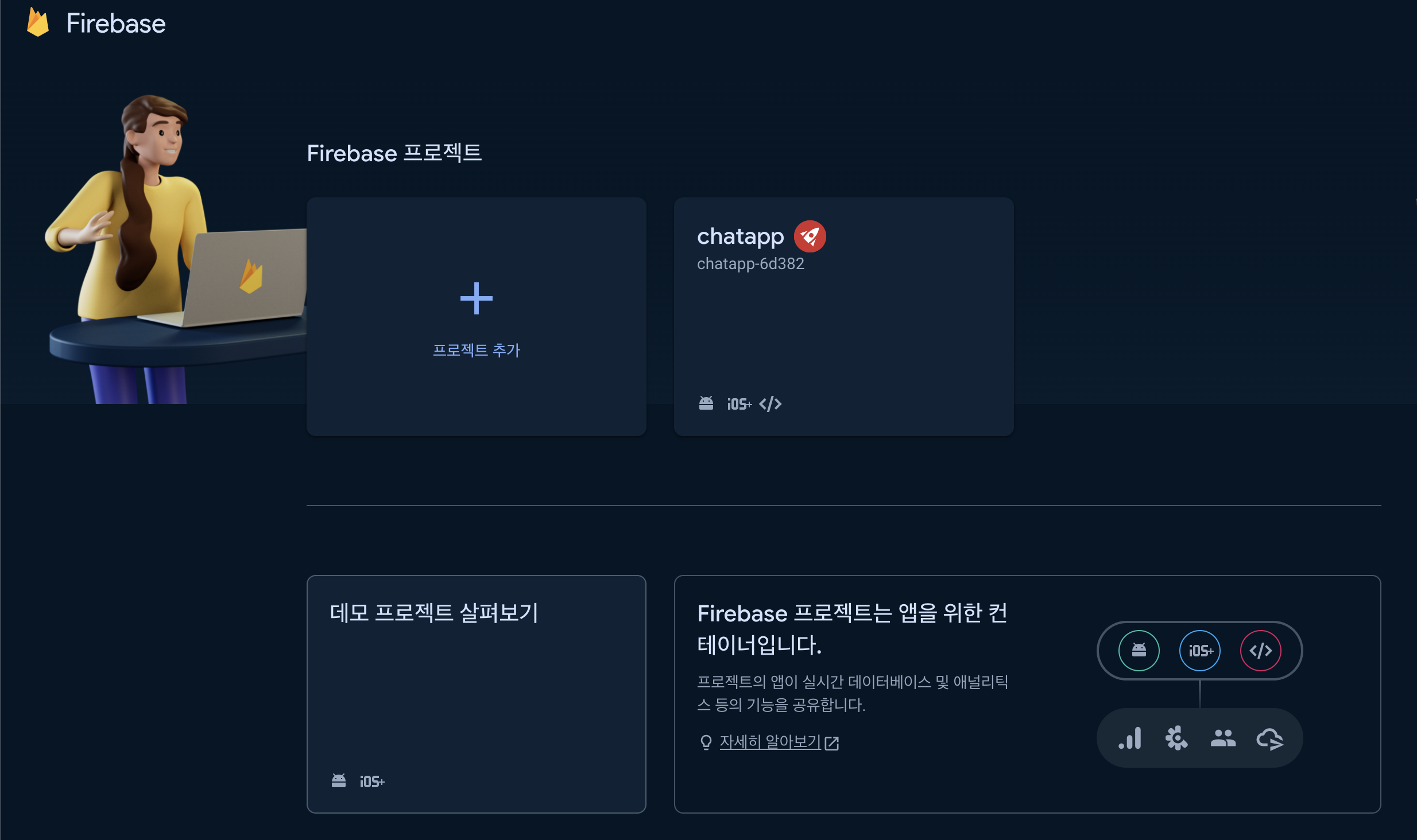 firebase를 프로젝트와 연결하기 위해서는 우선 firebase에서 프로젝트를 생성해야 합니다.